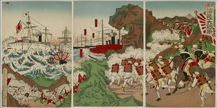 1894年(光绪二十年)7月25日丰岛海战爆发,甲午战争开始,由于日本蓄谋已久,而清朝仓皇迎战,这场战争以中国战败、北洋水师全军覆没告终。中国清朝政府迫于日本军国主义的军事压力,1895年4月17日签订了《马关条约》。甲午战争的结果给中华民族带来空前严重的民族危机,大大加深了中国社会半殖民地化的程度;另一方面则使日本国力更为强大,为其跻身列强奠定了重要基础。